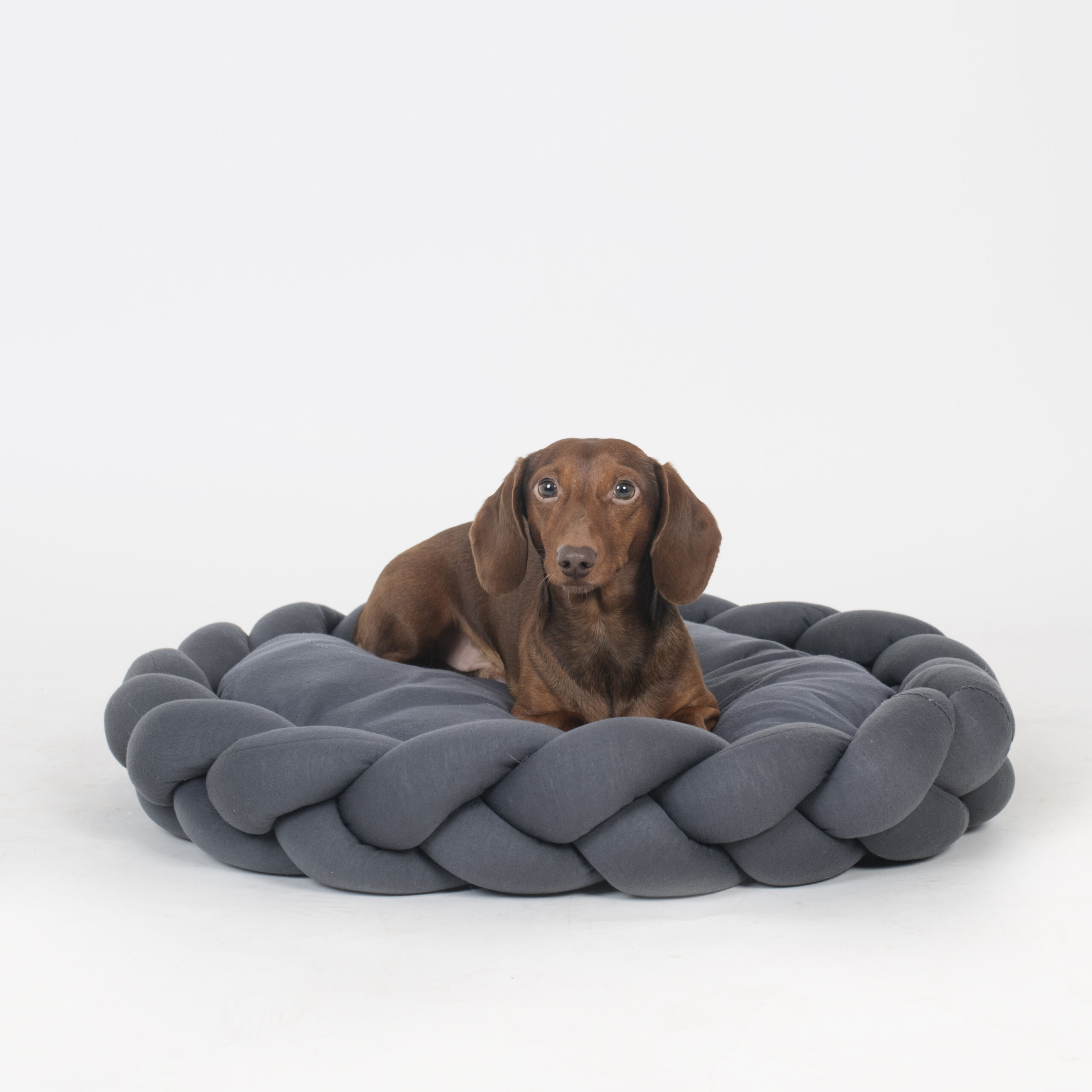 La Cuccia Joy è realizzata in cotone. Il cuscino interno è sfoderabile e lavabile, la sua imbottitura in poliestere fa sì che l’animale riposi su una superficie morbida e confortevole. La parta sottostante del cuscino è dotata di gommini antiscivolo che mantengono stabile la cuccia. Infine, la treccia esterna dona un tocco di eleganza e di design all’ambiente in cui verrà posizionata.